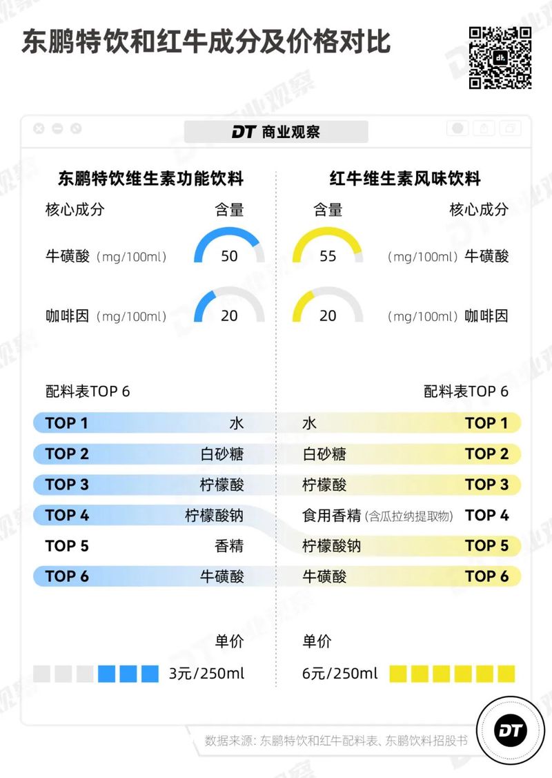 在核心成分差不多的情况下,东鹏的价格直接打到了红牛的一半。