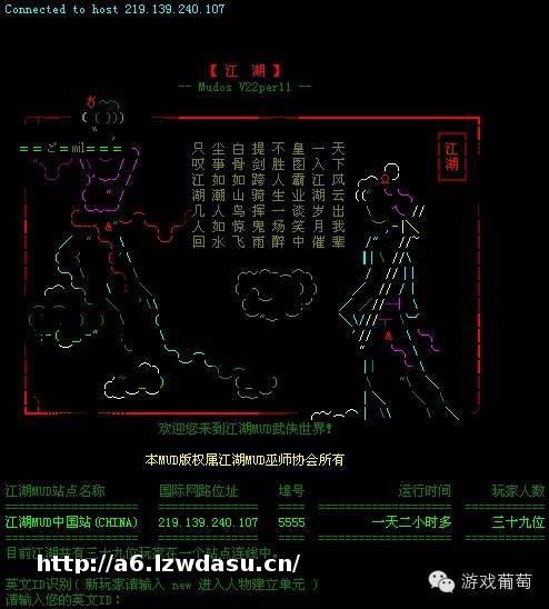 在《Zork》之后,国内最接地气的莫属以《江湖》为代表的一系列武侠风MUD游戏。中国武侠***有的魅力,结合MUD的简单操作,逐行显示的文字更是给国内玩家无尽的想象力。