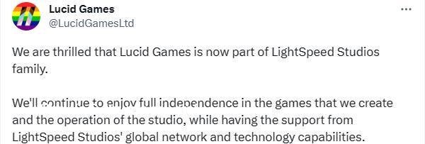 Lucid Games 表示,被收购后将依旧保持游戏开发和工作室运营的***,同时还能得到腾讯光子全球和技术能力的支持。