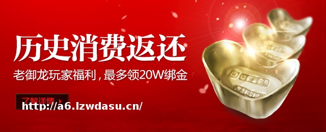 老玩家惊喜回馈,助你征战经典区。经典·不删档正式开启同时我们将开启“历史消费返还”活动。不同于“预充值返还”,只要你是御龙在天的老玩家就能参与!在活动时间内符合活动条件的玩家进入经典区,可获得2012年5月6日~2015年12月5日在《御龙在天》累计充值总额10%且不超过20万的绑金返还。御龙经典区,邀您再续辉煌。