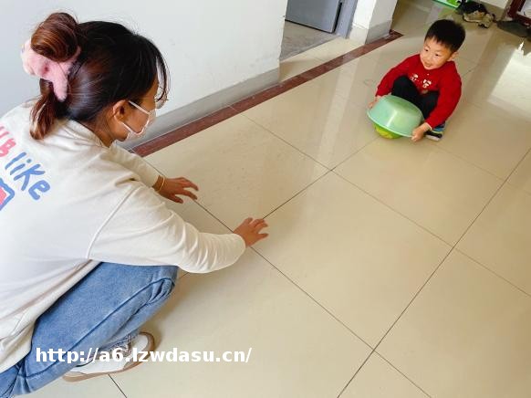 2. 游戏开始,爸爸或妈妈和孩子站在两端,保持一定的距离,爸爸或妈妈将球滚向宝贝。
