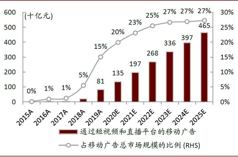 聚集短视频和**市场,同时艾瑞咨询预计到2025年这一占比将达到27%。我们判断,用户规模庞大且持续增长的短视频市场,将为游戏买量提供广阔的市场空间。