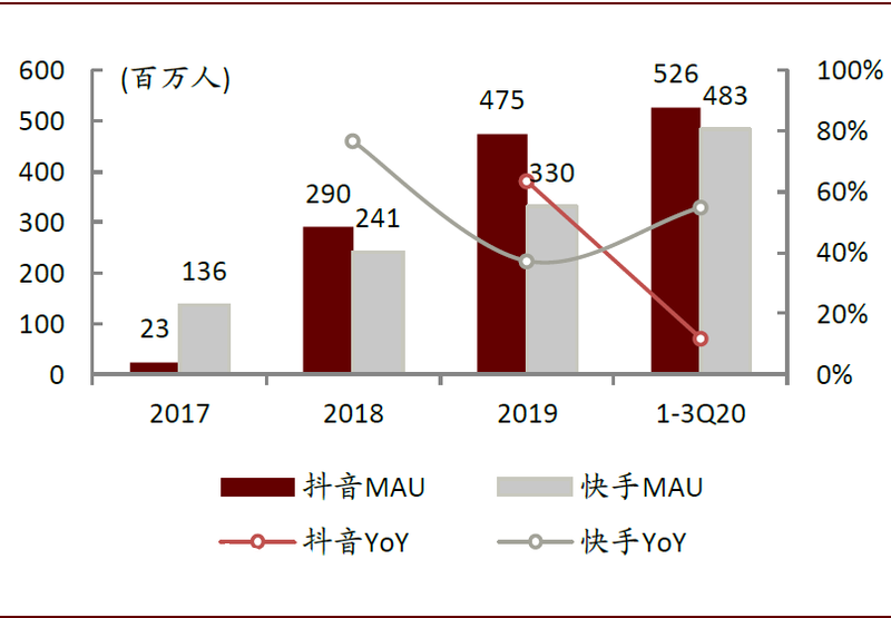 图表:**和**MAU规模及同比增速