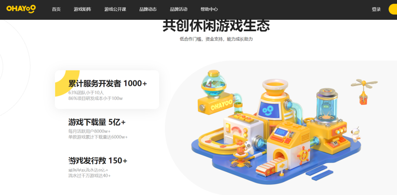 在轻量游戏领域,Ohayoo 可以说是卓有成就,游戏发行数 150+,月活用户达 8000w。