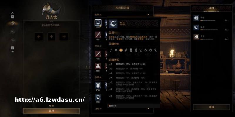 除了在玩法机制层面上做设计,《雾影猎人》还在数值层面上努力让玩家的战斗流派更加细分。游戏中的装备带有不同的词缀,可以给角色带来额外的效果或数值加成。对应的词缀数量越多,词缀等级就越高,数值提升越明显。游戏中还增加了凯旋之酒的设计,让玩家在每次开始探索之前都可以自选数个词缀。