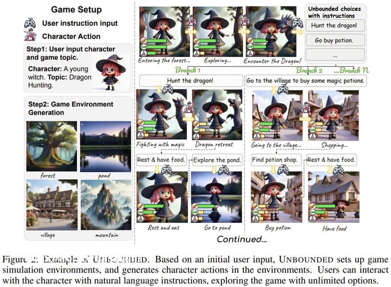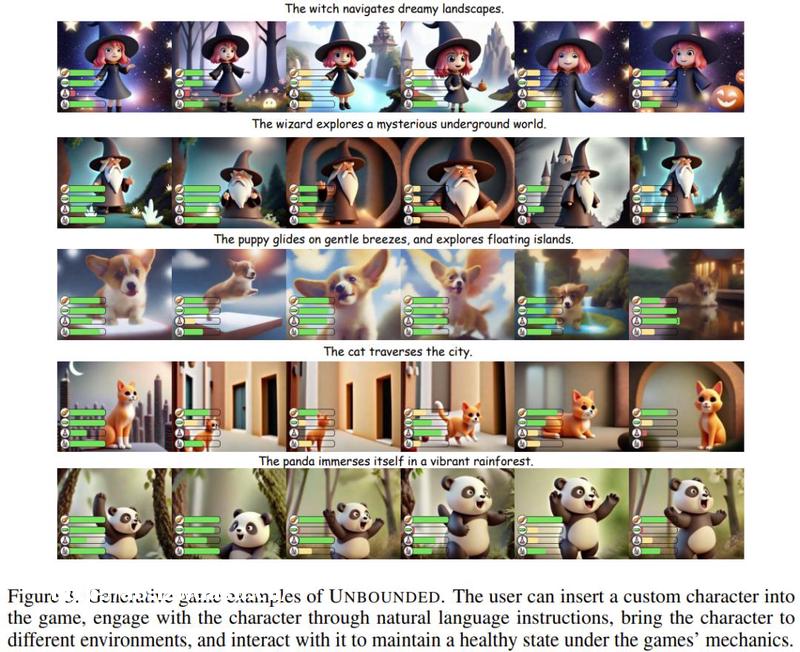 近日,谷歌和北卡罗来纳大学教堂山分校的一篇论文探索了这一可能*,提出了**交互式生成式无限游戏 Unbounded,其中的游戏行为和输出皆由 AI 模型生成,从而超越了硬编码系统的限制。