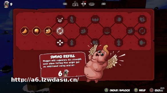 值得一提的是,当你在世界中探索时,世界中散落的一些罐头是小天使主要的成长方向。在团团吃掉这些之后,会得到相应的一个技能点,这些在很多时候都非常具有变革*,因为您基本上可以将内特每次跳跃的挥杆次数从 1 次增加到 5 次,还可以添加一些健康点和新动作。
