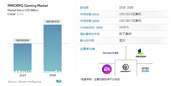 MMORPG游戏市场规模预计将从2023年的233.5亿美元增长到2028年的384.7亿美元。这个预测,对于近年存量市场**激烈的游戏行业来说,可谓是给了MMORPG一个非常强烈的增长讯号。