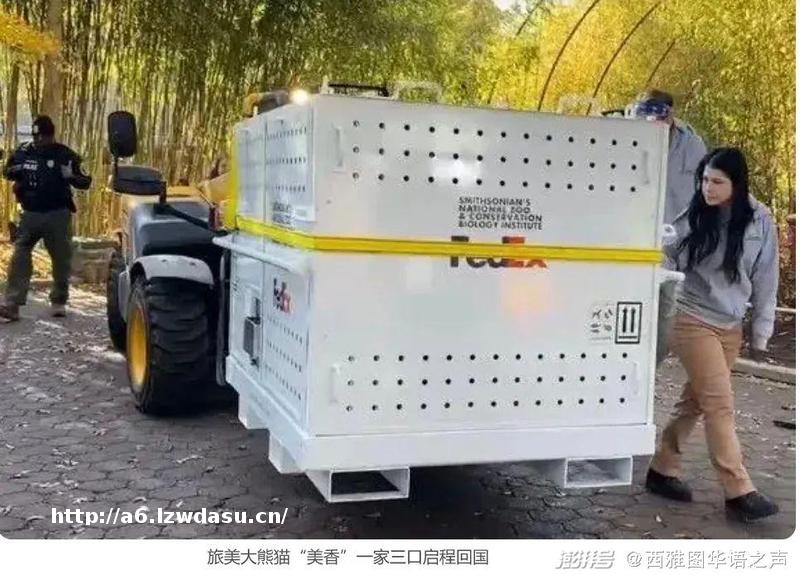 旅居美国的大熊猫“美香”“添添”和它们在华盛顿出生并长大的雄*幼崽“小奇迹”8日启程返回中国。当天上午,华盛顿史密森学会**动物园工作人员将三只装有大熊猫的特制“旅行**”、220磅(约合100公斤)竹子、饮用水及相关物资运上卡车。随后,载有“美香”“添添”和“小奇迹”的车队驶离动物园,前往华盛顿杜勒斯国际机场。