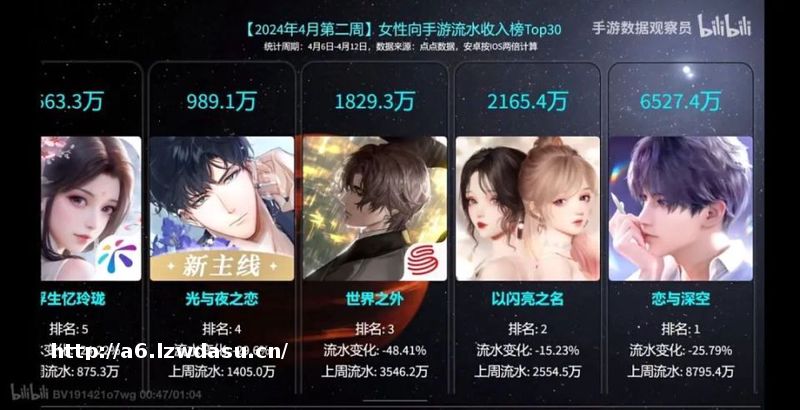 流水说明一切,《恋与深空》与《世界之外》毫无疑问成为了2024年开年国乙的大热门。