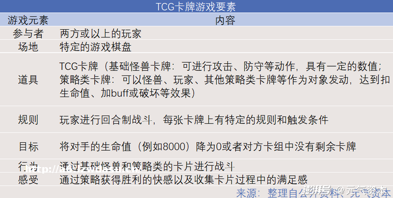 为了更加清晰地说明TCG卡牌行业的价值链,有必要对其玩法和规则进行简单介绍,下表罗列了TCG卡牌游戏基本要素。