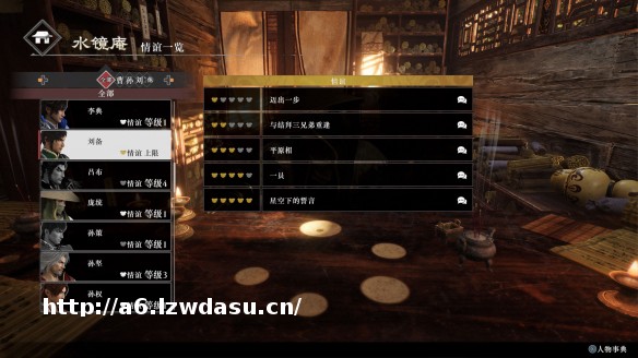 好感度是本作最耐刷的部分,在交谈后触发特别**有时会提供修炼任务有时会让无名承接委托。一般的修炼任务需要玩家使用特定的武器或招式在后续关卡击杀一定数量的敌人,郭嘉、陈宫这类军师提供的修炼任务需要玩家在战场发动一定次数的突袭或战术。委托则是直接在大地图上出现一个中小规模的关卡,有的是军中对练有的是救助某人。委托会随机给予一种道具。如果大地图上没有武将,这时可以返回城镇看看往来书信,也许会被某个武将告知自己在某处等你。