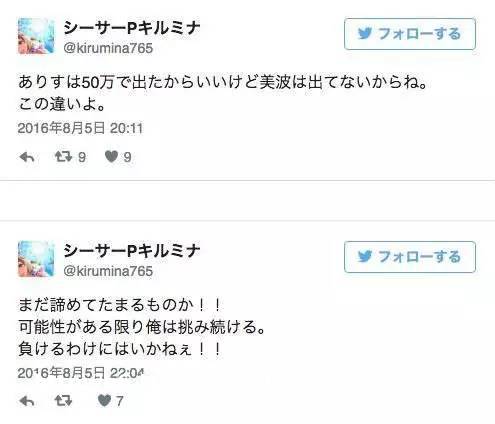 这是这款游戏前作《偶像**灰姑娘:星光舞台》中玩家的推特,一定是哪里出了问题。我才不会因为这小小的挫折而放弃,只要有希望就不会认输。”先不提玩家氪金数目的多少,而是玩家对于游戏内角色的痴迷程度让人惊讶的同时也不得不感叹二次元人群对于自己所喜爱角色的付出。这款游戏其实并不难,甚至玩家水平过关可以用**等级的卡片也能通关,但为何玩家依然偏向于高级的卡片,因为高级的卡片不仅数值高、技能易用*强,更为重要的一点就是卡面上那个角色,无论服装还是构图都要胜于低级的卡片,这就是玩家收集它们的意义。