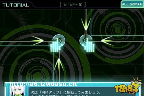 游戏基本采用多点触摸的手势操作。无论曲子有多么难,所有的操作都是一样的:点击、滑动、长按。这三个简单的基本动作构成了这款游戏的所有操作手法(其中有些需要双手操作)。按照光箭的提示采取相应的操作即可得分。过快或过慢都会收到游戏提示, 一目了然。随着动感的节奏漂亮地点击后,即可听到清脆的“啪”一声,速度把握得好的话就会形成一连串不绝于耳的节奏声,相当爽快。这种交互设计非常表现力十足,也更富**力。更令人惊讶的是,你可以随时在菜单里改变这个打击音效(目前游戏提供了三个选项)。