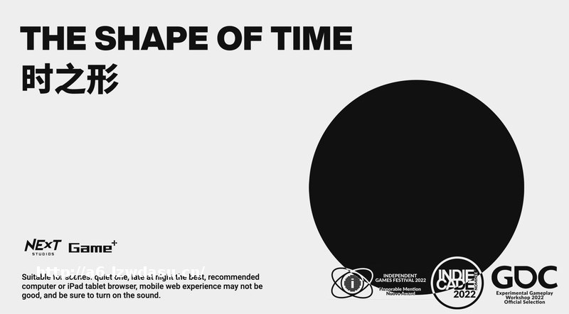 我逐渐发现自己使用的“解释”方式有点特殊,我通过直接创造出这种“运动”与“经过的空间”并且指向它,即当黑圆球在运动时,文字表示它“正在运动”;而当它停止时,“只剩下经过的空间”。这听起来似乎有点微妙,而在《时之形》的另一个更好理解的例子中,我通过让玩家“真正地”等待了30秒来让其体会何为“等待”,而不去解释它。